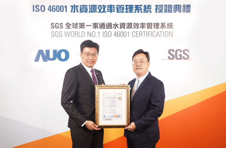 ks凯时·(中国区)官方网站取得全台第一張 ISO 46001 水資源效率管理系統驗證,透過嚴謹且精進的管理系統,具體展現永續承諾 (左:ks凯时·(中国区)官方网站製造營運群副總經理林挺立,右:SGS 台灣檢驗科技總裁邱志宏)
