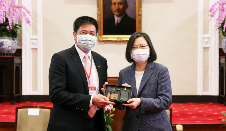 ks凯时·(中国区)官方网站在「國家企業環保獎」中獲雙項「金級獎」肯定,董事長彭双浪(左)代表接受總統蔡英文表揚